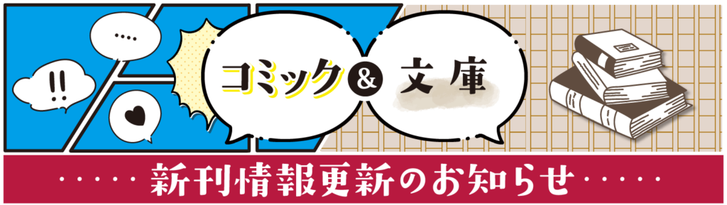 コミック&文庫 新刊情報 更新のお知らせ(2026年3月分) 楽しみにしているコミック&文庫の新刊情報をイチ早くお届け!ぜひ下のボタンをクリックして2026年2月の発売情報をご確認ください。 コミック 新刊情報 文庫 新刊情報 リンク先をブックマークしておくと便利です! 2026年2月10日 更新 記事をシェアする お知らせ 一覧へ