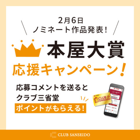 下のボタンより、ノミネート作品のなかから、特に応援したい作品への応援コメントをお送りください。コメントをお送りいただきますと、クラブ三省堂ポイント10ptをプレゼント致します。