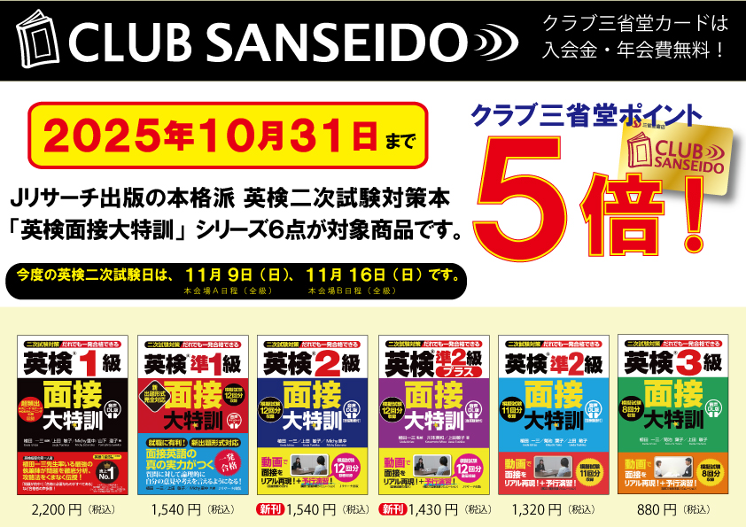 キャンペーン期間中にご購入いただきますとクラブ三省堂ポイントが5倍になります。