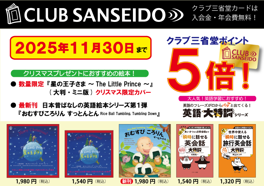 キャンペーン期間中にご購入いただきますとクラブ三省堂ポイントが5倍になります。