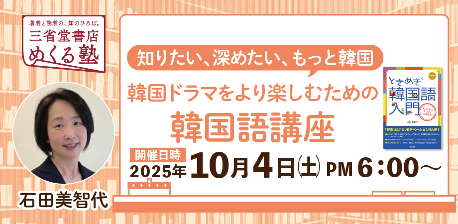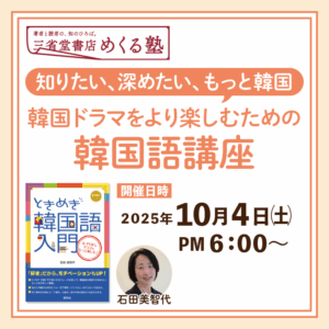 この秋、三省堂書店めくる塾では「知りたい、深めたい、もっと韓国」をテーマに、今後もさまざまな講座を開催予定です。お楽しみに。