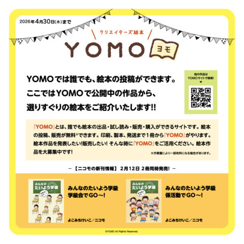 YOMOは誰でも絵本の出品・試し読み・販売・購入が出来る絵本サイトです。絵本の投稿、販売を無料※で行なえます。※作業量により一部有料になる場合があります。