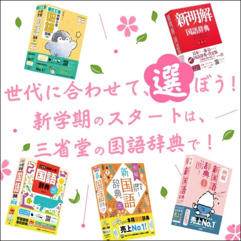 「例解小学国語辞典」「例解新国語辞典」は同じ内容の別デザイン版があり、お好きなデザインをお選びください。小学生向け、中学生向けの辞典はオールカラー、探しやすく読みやすいのが特徴です。さらに学習が進んだ段階では「新明解国語辞典」の語釈や用例に是非触れてみてください!