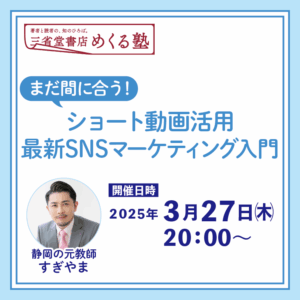 静岡の元教師すぎやま「まだ間に合う!ショート動画活用 最新SNSマーケティング入門」三省堂書店めくる塾 2025-03-27